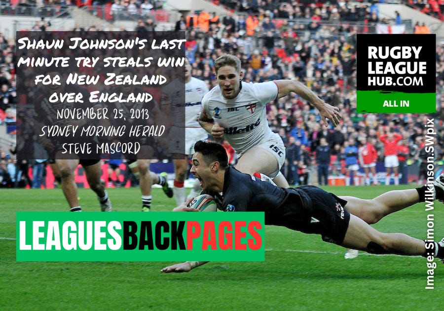 Shaun Johnson's last minute try steals win for New Zealand over EnglandSydney Morning Herald, Monday, November 25 2013Steve MascordNov 22, 2023∙ PaidShareThis post is for paid subscribersSubscribeAlready a paid subscriber? Sign inPreviousNext